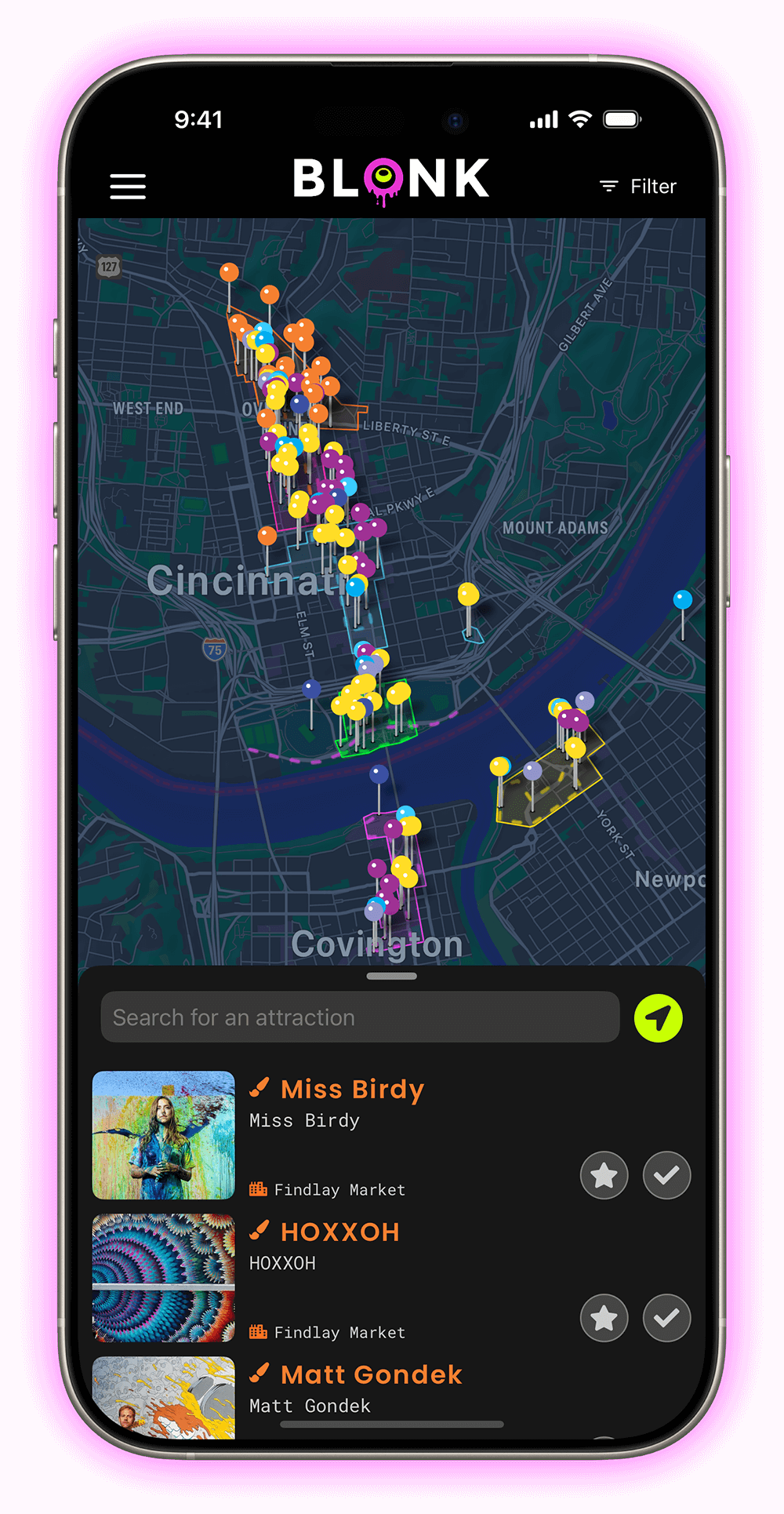 We want to add any and all rogue art installations and events surrounding BLINK to the app. Please send anything you have to info@blonkcincinnati.com and we will try to get it added as soon as possible!